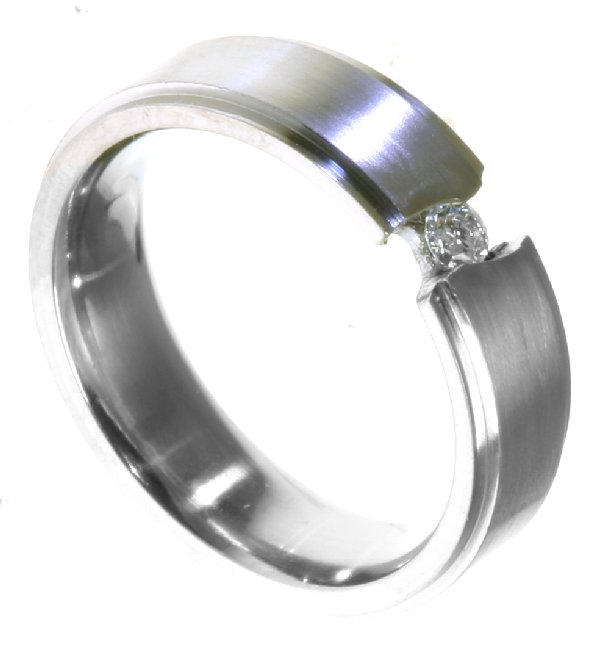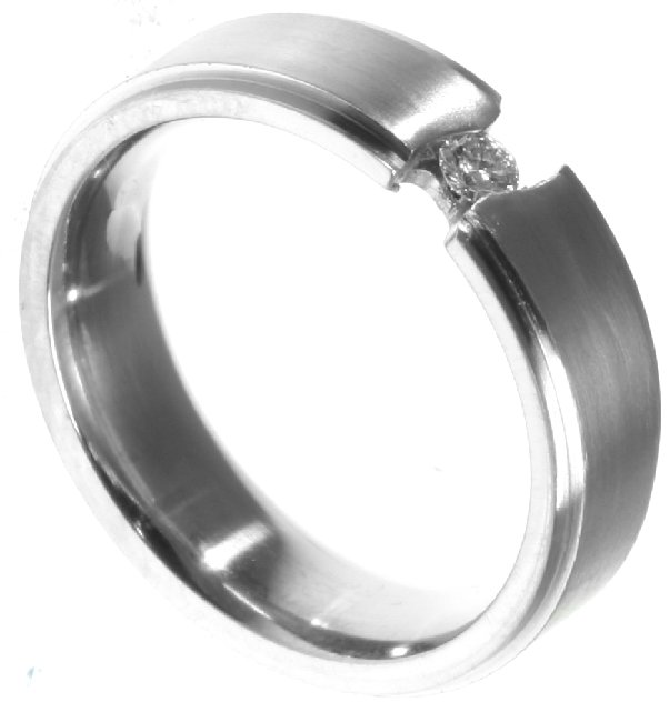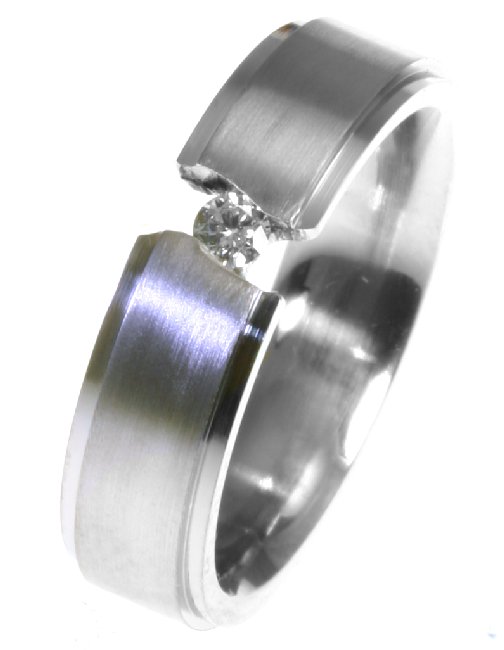 Palladium, comfort fit, classic, 6.0mm wide wedding band. the ring holds 0.10ct round brilliant cut diamond with VS in clarity G-H in color.