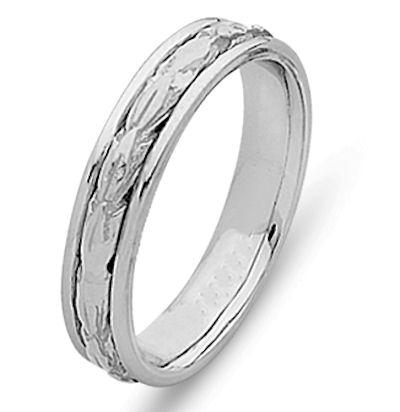 Platinum hand crafted 5.0 mm wide, comfort fit Celtic wedding band. The leaves are hand carved in platinum and have a matte finish. The outer edges are polished. Different finishes may be selected or specified.