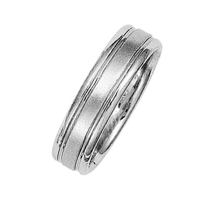 Platinum classic wedding band. This ring is 6.0 mm wide and comfort fit. The ring has a matte finish. Different finishes may be selected or specified.