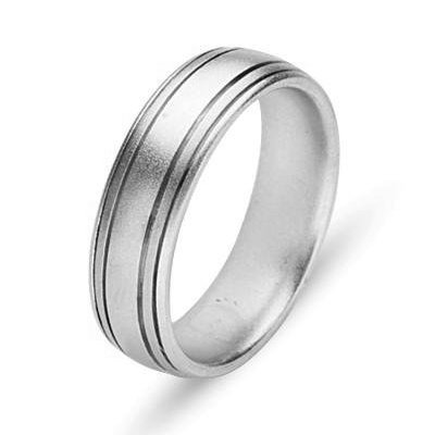 14Kt White gold wedding band. The ring is about 6.0 mm wide and comfort fit. The ring has a satin matte finish. Different finishes may be selected a or specified.