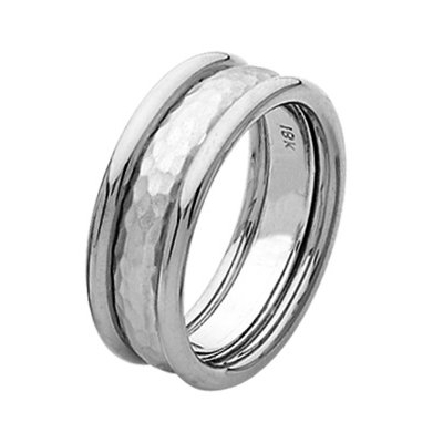 Item #211291WE - 18K White Gold Hammered Wedding Bands