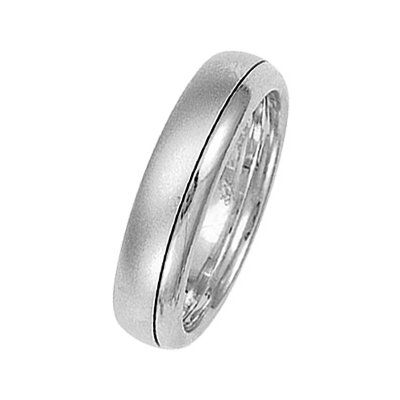 14Kt White gold wedding band. The ring is about 5.5 mm wide and comfort fit. One portion of the ring is matte and the other is polished. Different finishes may be selected or specified.