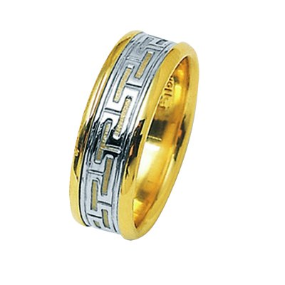 Platinum and 18 Kt Greek Key Wedding Band