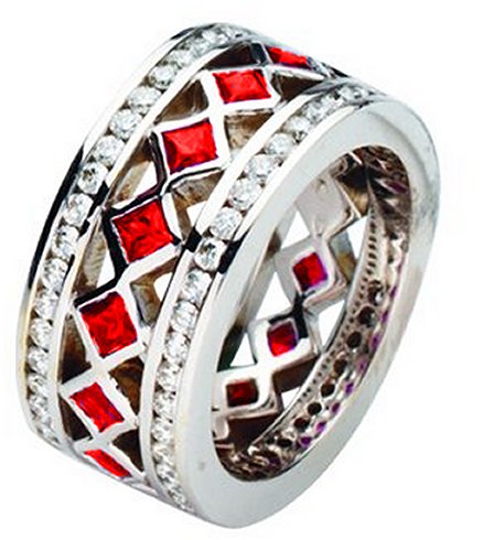 18Kt White gold ruby and diamond ring. The total weight is approximately 1.57ct rubies and 1.33ct diamonds, VS1-2 in clarity and G-H in color. The whole ring is polished. Different finishes may be selected or specified.
