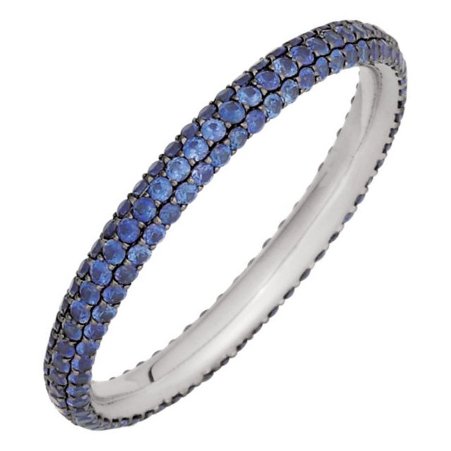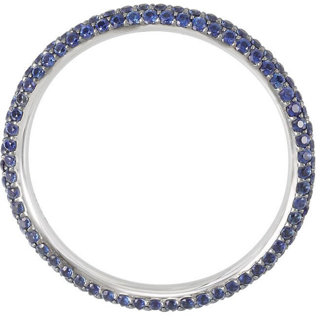 18Kt White gold sapphire eternity ring. The ring holds 165 sapphires in size 6.0 with sapphire total weight of approximately 1.00ct. The ring is polished. Different finishes may be selected or specified.