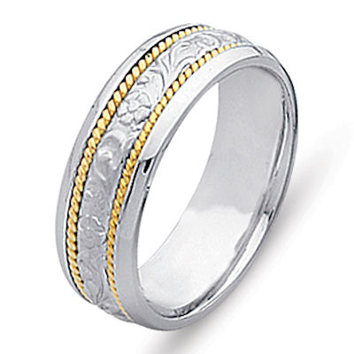 Item #21491PE - Platinum & 18Kt Gold Carved Wedding Band
