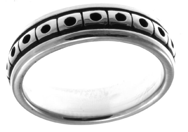 Hand crafted, 18Kwhite gold, Black Antique, 5.0 mm wide comfort fit Celtic wedding band. The finish is polished. Different finishes may be selected or specified.