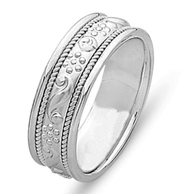 Item #21699PP - Platinum Hand Carved Wedding Band