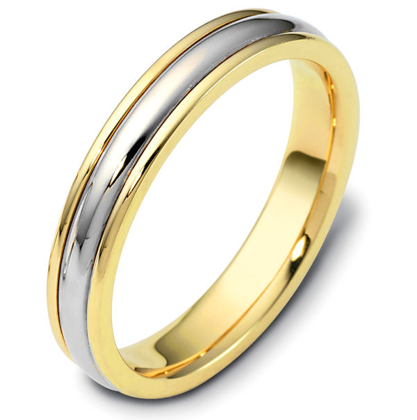18kt Two-tone gold classic, comfort fit, 4.0mm wide wedding band. The ring has a polished finish. Different finishes may be selected.