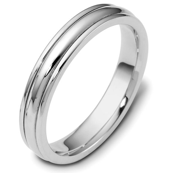 14kt White gold classic, comfort fit, 4.0mm wide wedding band. The ring has a polished finish. Different finishes may be selected.