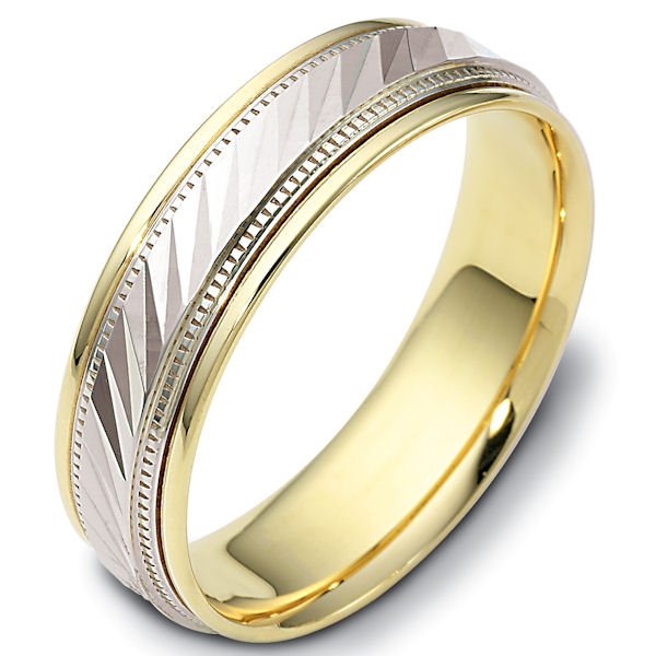 Platinum and 18kt yellow gold classic, comfort fit, 6.0mm wide wedding band. The ring has a high polish finish. Different finishes may be selected.