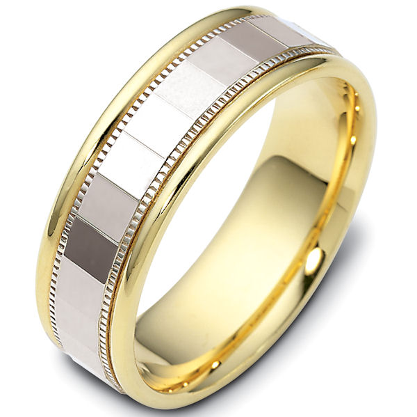 14kt Two-tone gold classic, comfort fit, 7.0mm wide wedding band. The ring has a polish finish. Different finishes may be selected.