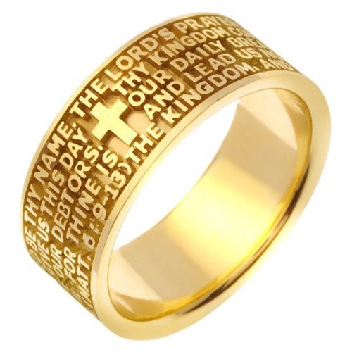 14K yellow gold Lord's Prayer wedding band. The wedding band is comfort fit.