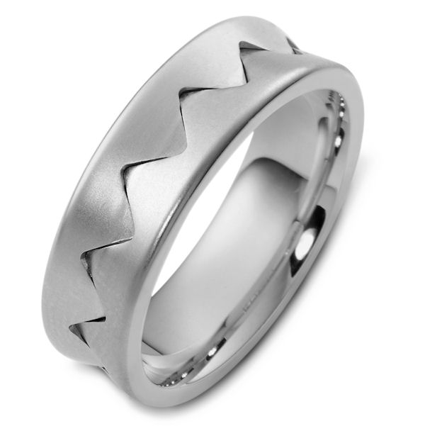 14kt White gold contemporary, comfort fit, 7.0mm wide wedding band. The ring has a matte finish. It is 7.0mm wide and comfort fit.