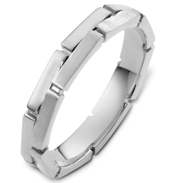 18kt White gold contemporary, comfort fit, 4.0mm wide wedding band. The ring has one side polished and the other matte finish. It is 4.0mm wide and comfort fit.