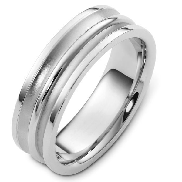 Palladium classic, comfort fit, 7.0mm wide wedding band. The grooves in the ring have a sandblast finish and the rest of the ring are polished. Different finishes may be selected or specified.