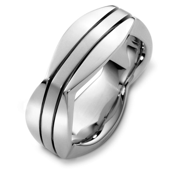 14kt White gold contemporary, comfort fit, 8.5mm wide wedding band. The ring has a square shape and comes with a polished finish with bushed center. It is 8.5mm wide and comfort fit.