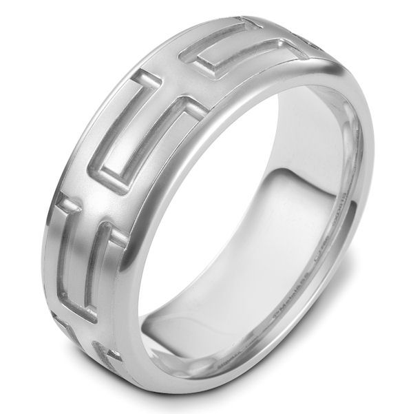 Palladium carved, comfort fit, 8.0mm wide wedding band. The ring has a beautiful carved pattern around the whole band. The center portion is a matte finish and the edges are polished. It is 8.0mm wide and comfort fit.