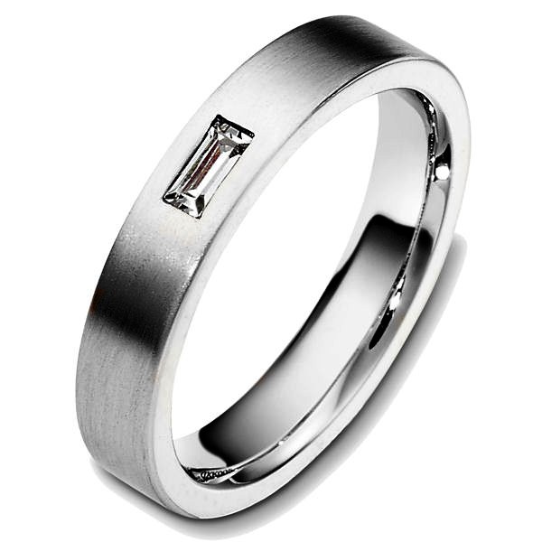 Titanium, comfort fit, 4.0mm wide wedding band. The wedding band holds one straight baguette diamond that weighs 0.15ct