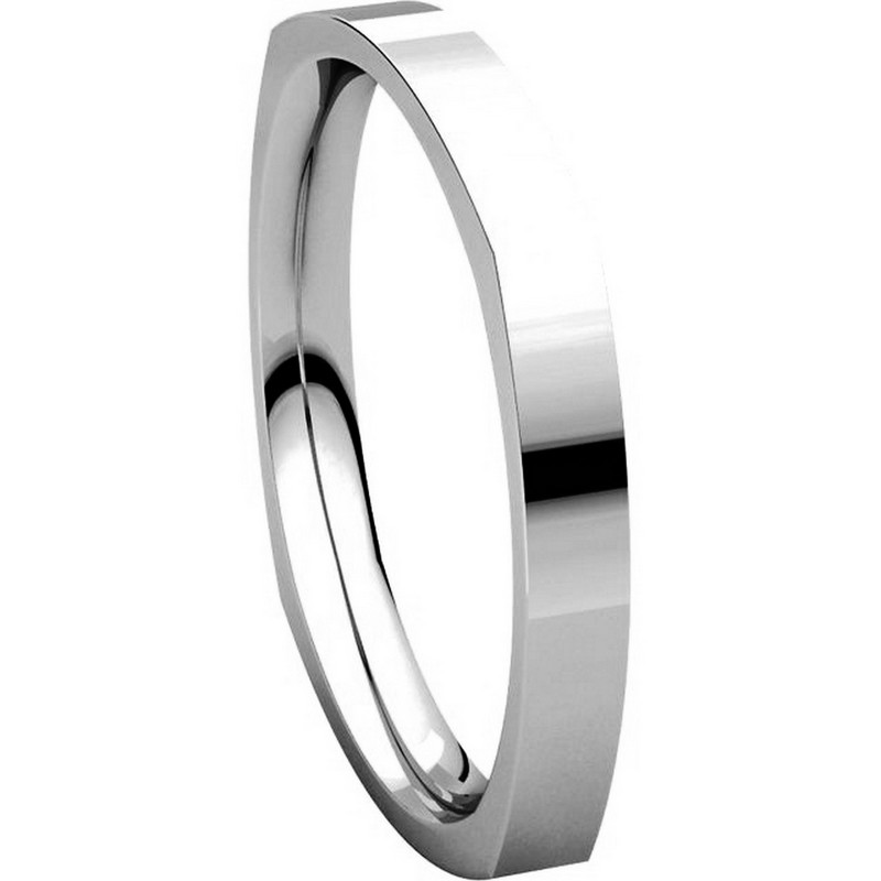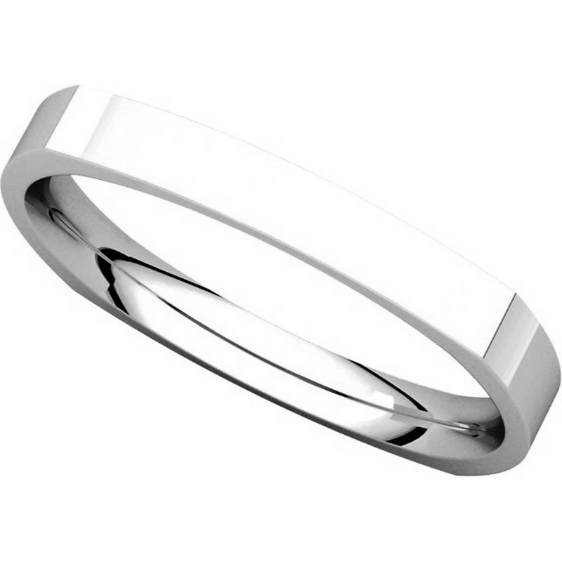 18kt White gold square, classic, comfort fit, 2.5mm wide wedding band. The ring is square shaped and the corners are slightly thicker than the center portion of the band. The ring is matte finish. Different finishes may be selected.