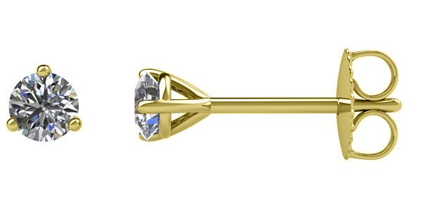 14K gold 3-prongs, friction back diamond earrings. Diamonds together weigh approximately 0.20ct and are graded as SI in clarity G-H in color.
