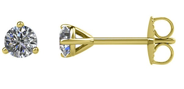 14K gold 3-prongs, friction back diamond earrings. Diamonds together weigh approximately 0.25ct and are graded as SI in clarity G-H in color.