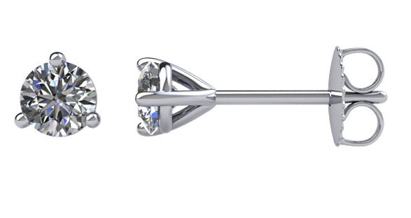 14K white gold, 3-prongs, friction back diamond earrings. Diamonds together weigh approximately 0.33ct and are graded as SI in clarity G-H in color.