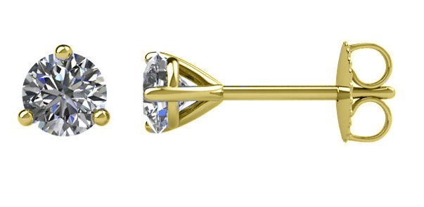 14K gold, 3-prongs, friction back diamond earrings. Diamonds together weigh approximately 0.50ct and are graded as SI in clarity G-H in color.