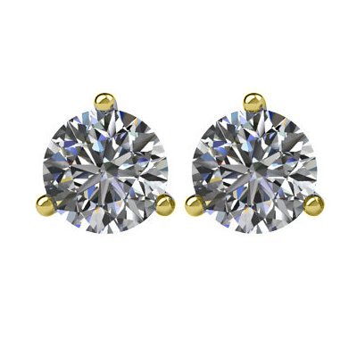 14K gold, 3-prongs, friction back diamond earrings. Diamonds together weigh approximately 0.75ct and are graded as SI in clarity G-H in color.