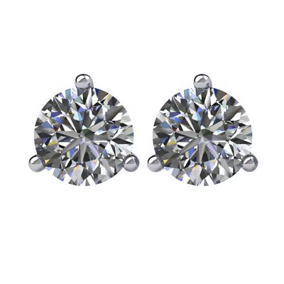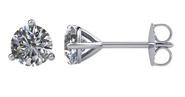 14K gold, 3-prongs, friction back diamond earrings. Diamonds together weigh approximately 0.75ct and are graded as SI in clarity G-H in color.