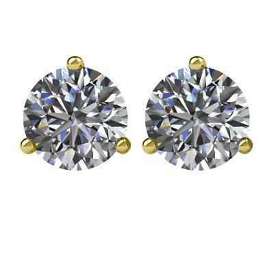 14K gold, 3-prongs, friction back diamond earrings. Diamonds together weigh approximately 1.00ct and are graded as SI in clarity G-H in color.