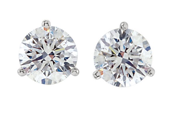 Platinum 3-prongs friction back diamond stud earrings. The diamonds together weigh 1.50ct and are graded as VS in Clarity G-H in Color.
