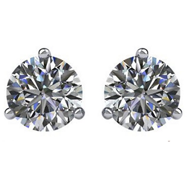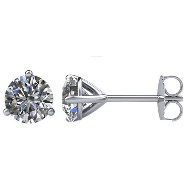 18K white gold, 3-prongs, friction back diamond earrings. Diamonds together weigh approximately 3.0ct and are graded as SI in clarity G-H in color.