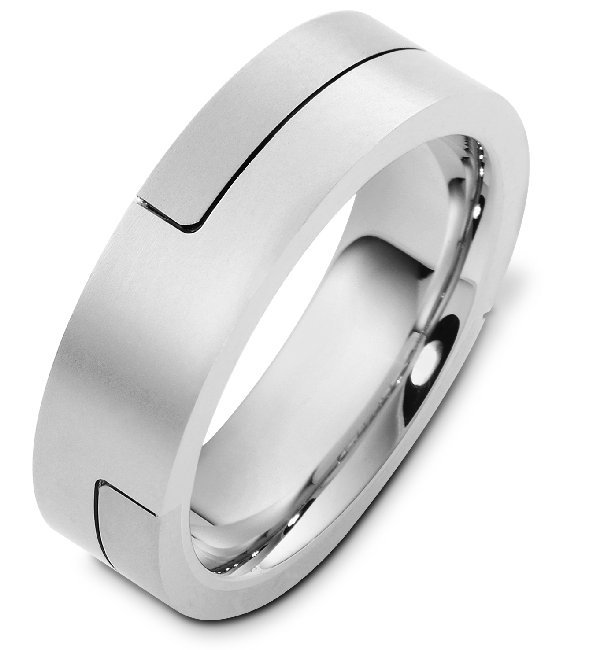 Silver 925, comfort fit, 7.0 mm wide wedding band. There is a larger separation between the pieces on the other end of the band. Part of the ring is polished and the other is matte. Different finishes may be selected or specified.