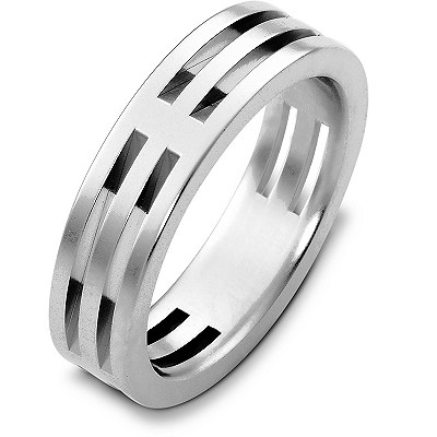 18K white gold, 6.0 mm wide, comfort fit wedding band. The finish on the ring is matte. Different finishes may be selected or specified.
