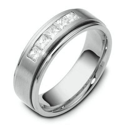 Platinum, 6.5 mm wide, 0.60 ct total weight, diamond ring. Diamonds are VS1 in clarity G-H in color. The center finish is brushed and the outer edges are polished. Different finishes may be selected or specified.
