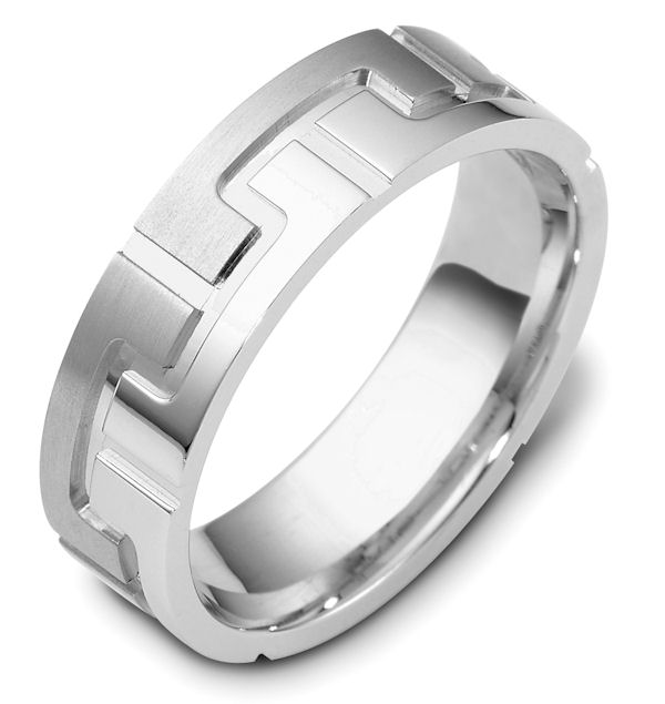 Palladium contemporary carved, comfort fit, 6.5mm wide wedding band. The ring is carved with a mix of matte and polish finish. It is 6.5mm wide and comfort fit. Different finishes may be selected or specified.