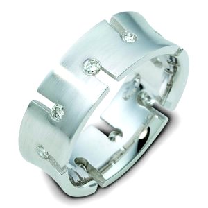 Palladium, comfort fit, 7.0 mm wide diamond wedding band. Around the ring there are 10 diamonds, weighing a total of 0.40 ct and are graded as VS in clarity G-H in color. The finish on the ring is brushed. Different finishes may be selected or specified.