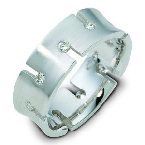 18kt White gold, 7.0mm wide, 10 diamond ring. Diamond total weight is 0.40 ct tw and graded as VS1 in clarity G-H in color. The finish on the ring is brushed. Different finishes may be selected or specified.