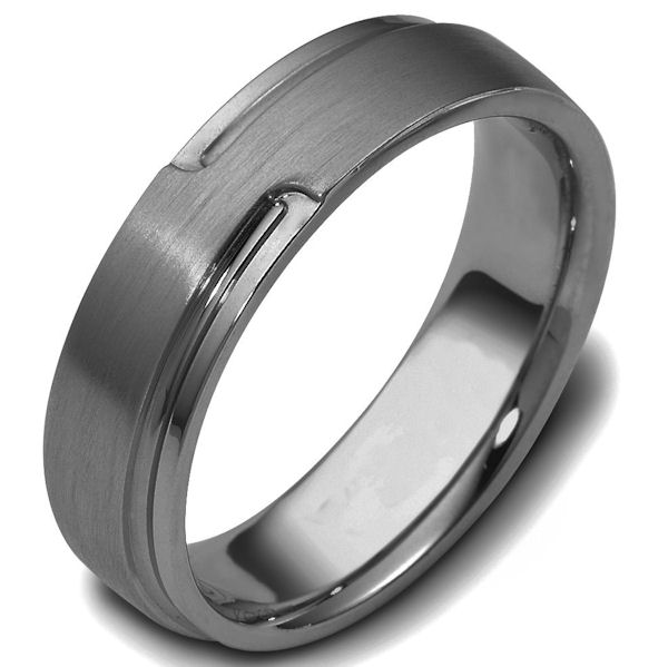 Titanium, carved, comfort fit 6.0 mm wide wedding band. The raised portion of the ring is brushed finish and the other part is polished.. Other finishes may be selected or specified.