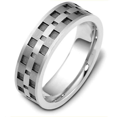 Titanium and 14 kt white gold, 7.0 mm wide, comfort fit band. The grooves are a sandblast coarse finish and the rest is polished. Different finishes may be selected or specified.