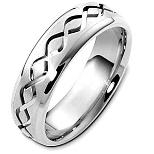 Palladium, 6.5 mm wide, comfort fit, carved wedding band. The finish in the center is brushed and the outer edges are polished. Different finishes may be selected or specified.