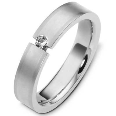 18K white gold, 5.0 mm wide, comfort fit, diamond wedding band. Diamond is 0.09 ct and VS in clarity G-H in color. The finish on the ring is matte. Other finishes may be selected or requested.