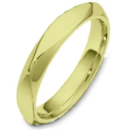14 Kt gold wedding band, 4.0 mm wide, comfort fit wedding band. The band is plain with subtle accents. The finish on the ring is polished. Different finishes may be selected or specified.