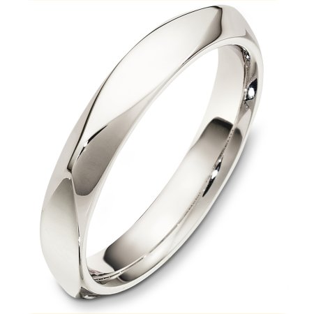 14 Kt White gold wedding band, 4.0 mm wide, comfort fit wedding band. The band is plain with subtle accents. The finish on the ring is polished. Different finishes may be selected or specified.
