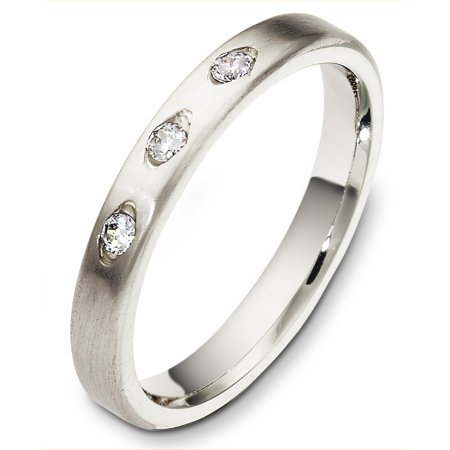 Palladium, 3.0 mm wide, comfort fit diamond wedding band. The total diamond weight is 0.12ct and each diamond is graded as VS in clarity and G-H in color. The finish is brushed. Other finishes may be selected or specified.
