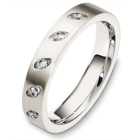 Palladium, 4.0 mm wide, comfort fit diamond wedding band. The diamond total weight is 0.2ct. The diamonds are graded as VS in clarity and G-H in color. The finish on the ring is matte. Other finishes may be selected or specified.