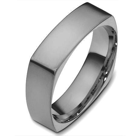 Titanium wedding band, 6.0 mm wide, comfort fit wedding band. The band is squared and has rounded edges for a comfort fit. The finish on the ring is brushed. Other finishes may be selected or requested.