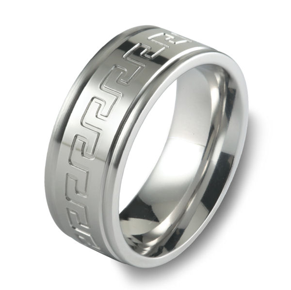 Item #C15085C - Cobalt Chrome Greek Keys Wedding Ring