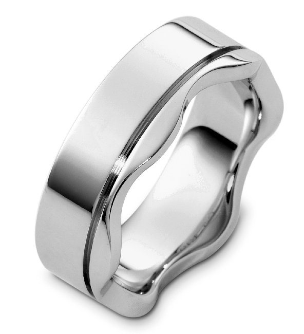 14K white gold, 7.0mm wide, comfort fit contemporary wedding band.